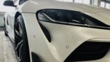 ランドクルーザープラドは、SUVらしい力強いデザインが特徴です。大きなフロントグリルや高めの車高がオフロード性能の高さを物語っています。また、LEDヘッドライトや流れるようなボディラインが、都会にも馴染む洗練された印象を与えます。